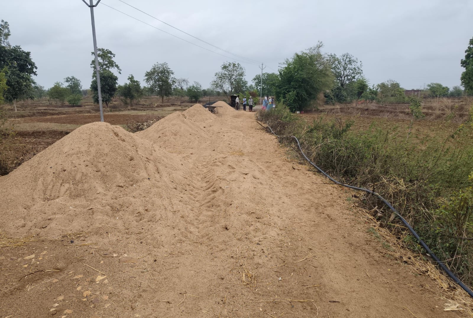 अशाप्रकारे रस्त्यावर रेती पसरलेली आहे
